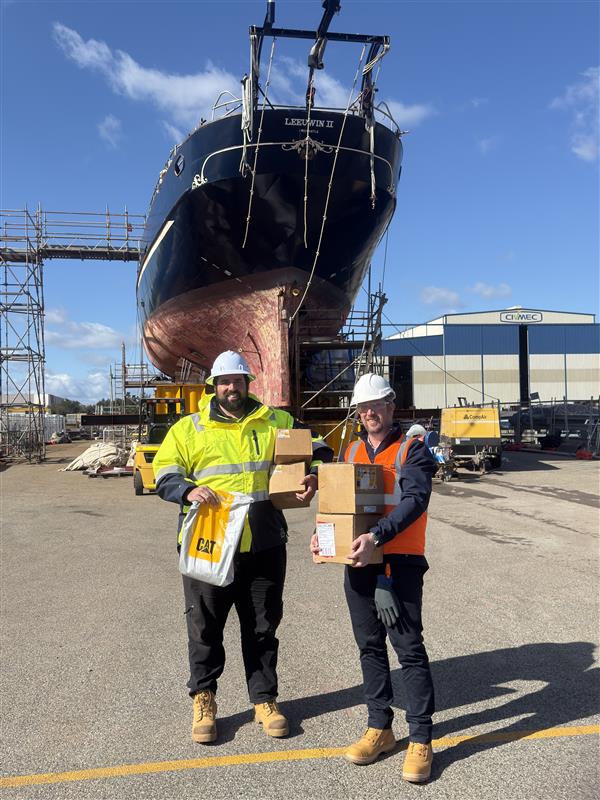 A big thank you to WesTrac Cat and Energy Power Systems CAT for their generous support of the STS Leeuwin II refit. They’ve kindly donated two turbos and key parts for our generators — a valuable contribution to getting the ship back into service. Pictured is our Operations Manager Max, receiving the delivery on site from Chris Brophy, National Sales Representative – Marine at EPS. We’re grateful for the backing of organisations like CAT and EPS who share our commitment to supporting youth development and getting us back out on the water!